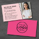 Girly Hot Pink Foto Logo Berufliche Visitenkarte. Diese elegante und feminine Visitenkarte eignet sich perfekt für mädchenhafte Marken, einflussreiche Persönlichkeiten, Boutiquen oder alle, die einen stilvollen und modernen Eindruck machen möchten. Die Vorderseite der Karte bietet einen weichen, rosafarbenen Hintergrund mit Platz für Foto, Titel, Namen und Kontaktinformationen und schafft so ein personalisiertes und elegantes Ambiente. Die Rückseite der Karte Pop mit einem lebhaften magenta heißen rosa Hintergrund und Platz für Ihr Firmenlogo, sodass es ein markiertes und poliertes Aussehen. Die fett formatierte Typografie der Karte und ihr individualisierbares Design sorgen für eine minimale, aber trendige Ästhetik, die sie ideal für den persönlichen oder geschäftlichen Gebrauch macht. Egal ob Sie ein Social Media Einflussnehmer, ein Stylist oder ein kleiner Geschäftsinhaber sind, diese Karte ist vollständig an Ihre Marke angepasst und verlasst einen bleibenden Eindruck.