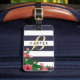 Marineblau- und weißergestreifter Gepäckanhänger mit rosa Gartennelken, Ihren Namen und die Initiale Ihrer Nachname kennzeichnend.