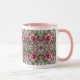 Dies ist eine Tasse, die ein Buntglas-Design mit rosa Blume hat.