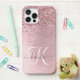 Rosa gebürsteter Glitzer Monogramm Name iPhone 12 Pro Max Hülle