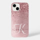 Rosa gebürsteter Glitzer Monogramm Name iPhone 14 Hülle