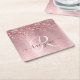 Rosa gebürsteter Glitzer Monogramm Name Rechteckiger Pappuntersetzer