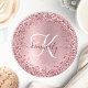 Rosa gebürsteter Glitzer Monogramm Name Runder Pappuntersetzer