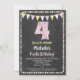 Eine funky Chalkboard Rosa und Gelb 4. Geburtstagseinladung mit grobem Kreidetext oben mit Chalkboard-Hintergrund, Flaggen und einem niedlichen Polka-Dot-Rahmen.