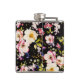 Rosa gelbe Rosen, schwarzer Hintergrund Flachmann