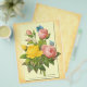 Antike Reproduktion von rosa und gelben Rosen aus Vintagen botanischen Kunstwerken des berühmten Künstlers Pierre Redoute mit blauen Schmetterlingen auf einem Imitat Pergament Hintergrund. Klicken Sie auf Anpassen, um Ihren Namen oder Ihre Nachricht hinzuzufügen.