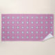 Ein Badezimmerset bestehend aus rosa Handtüchern mit einem geometrischen Muster aus blauen Blumen und Sechsecken. Enthält ein Handtuch und einen passenden Waschlappen.