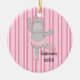 Tanzen Sie Ihr wegherz! Dieses ist eine entzückende Ballerinaflusspferd Weihnachtsverzierung für diesen Tänzer in Ihrem Leben. Es ist auf einem dunklen rosa Hintergrund mit Weiß, hellere rosa Streifen. Es gibt eine niedliche Flusspferdballerina, die in einem rosa Tutu gekleidet wird. Karo heraus unsere vielen anderen Entwürfe und Farben. ©JW Illustrationen