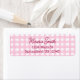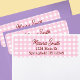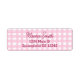 Rücksende-Adressaufkleber in einem niedlichen Stil mit femininer Schrift auf einem rosa Gingham-Hintergrund. Passen Sie die Aufkleber an, indem Sie Ihren Namen und Ihre Adresse im Bearbeitungsfenster hinzufügen.