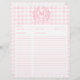 Rosa Gingham Bloral Wappen Monogram Rezept Blatt
