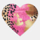 Rosa Glam Leopard Print Abstrakt Herz-Aufkleber