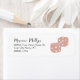 Diese benutzerdefinierten Adressetiketten verfügen über ein einfaches und elegantes Casino-Thema. Auf der rechten Seite wird ein Bild von Würfeln im zarten Rosa-Glitzer mit Namen und Adresse auf dem links abgebildet. Es ist perfekt für einen Craps-Fan, einen Bunco-Fan oder ein anderes Würfel-Rollspiel.