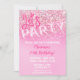 Rosa Glitzer Geburtstagsparty Einladung für alle Altersgruppen mit modernen Drehbüchern und lustigen Ballons.