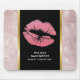 Ein personalisiertes Mousepad mit Ihrem Namen und Titel. Entworfen mit einem Hintergrund komponiert mit einer modernen trendigen Rose goldgelben tropischen Blätter Muster. Oben platziert ist ein schwarzer Rahmen mit einem goldenen Farbverlauf, innen sind rosa glitschig lips.