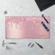 Moderne mit Monogramm Schreibtischmatte mit rosa Imitat Glitzer Tropfen auf einem rosa Imitat Folie Hintergrund. Personalisieren Sie mit Ihrem Namen in einem eleganten rosa Skript mit Swashes.