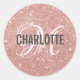 Moderner Rosa Glitzer Aufkleber mit dunkelgrauem Namen und weißem Monogramm. Personalisieren Sie mit Ihrem Namen und Initial.