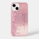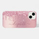 Individuell elegante und gürtliche iPhone Gehäuse mit tropfenden rosa Imitat Glitzer auf einem rosa Imitat Folie Hintergrund. Personalisieren Sie mit Ihrem Namen in einem stilvollen, trendigen rosa Skript mit Swashes.