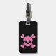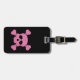 Dieses individuelle Gepäckanhänger zeichnet sich durch ein glamouröses gotisches Thema aus. In der Mitte ist ein Bild eines Schädels und Kreuzknochen in einem rosa Glitzer auf schwarzem Hintergrund gedruckt.