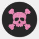 Rosa Glitzer Skull und Crossbones auf Schwarz Runder Aufkleber