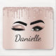 Rose Gold - Schwarz rosa Imitate Foil Metallic Sparkle Tropfen Glitzer Pinselfarben Monogram Name and Initial Eyelashes (Lashes), Eyelash Extensions and Eyes Blush Pink Mouse Pad (mousepad). Das Design macht den perfekten 16 Geburtstag, Hochzeit, Brautparty, Jubiläum, Babydusche oder Junggeselinnen-Abschied Geschenk für jemanden, der einen trendigen coolen Stil sucht.