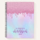 Dieses personalisierte 8,5 x 11 Sketchbook hat rosa Glitzer-Tropfen und lila Text auf einem holografischen Hintergrund. Passen Sie das Sketchbook mit dem Namen Ihrer Wahl an, damit sich jemand ganz besonders fühlt. Macht ein lustiges Geschenk zum Geburtstag oder zu Weihnachten. Es gibt eine Vielzahl von Farben. Entworfen für Sie von BlackBerry Boulevard.