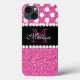 Rosa Glitzer White Polka Dots Mit Monogramm Case-Mate iPhone Hülle