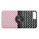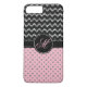 Moderner Case-Mate-Fall mit Monogramm- und Silber-Glitterpolkapunkten des Argentic Glitzer-Schwarzen Zickzack auf rosa Hintergrund.