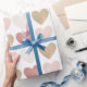 Wrap deine Valentinstag Geschenke mit Liebe mit diesem lustigen Packpapier, mit Aquarellherzen in Rosa, Gold und Creme Farben.