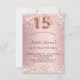Für eine elegante Quinceañera, 15. Geburtstagsfeier. Hintergrund mit rosafarbenem Farbverlauf. Mit Konfetti dekoriert. Personalisieren und fügen Sie einen Namen und Party-Details hinzu. Der Name wird mit einem handgeschriebenen Stilskript geschrieben. Nummer 15 wird mit einem Schriftart im Ballonstil geschrieben.