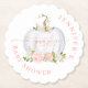 Rosa-Rosa-Gold Kleiner Kürbispapier Untersetzer. "Ein kleiner Kürbis ist auf dem Weg" Babydusche Dekoration. Matching-Elemente verfügbar.
