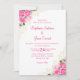 Dieses elegante Blumendesign ist einfach und trendig. Ihre Hochzeitsdetails sind gerahmt mit hellrosa Aquarellfarben und goldenen Blumenakzenten. Der Text ist in einer ergänzenden heißen rosa Farbe. Die Rückseite ist mit einem farbenfrohen rosa Hintergrund versehen.