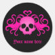 Rosa Gothschädel auf schwarz Runder Aufkleber
