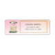 Moderne Niedliche mädchenhafte rosa und graue Kuh hinter einem Zaun mit Namen und Adresse. Die perfekte Rücksendeadresse für Ihre Geburtstagsfeier.