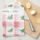 Ein rosa und rot kariertes (Gingham) Aquarellmuster macht dieses Küchentuch zu einem besonderen Geschenk für Ihren Urlaub. Die Saisonfarben, von denen Sie wissen, dass Weihnachten hier ist. "Frohe Weihnachten". Die roten Beeren und die grüne Heilige sind niedliche Urlaubspflege. Stellen Sie sicher, dass Sie den Familiennamen und das Datum ändern. Sie können gewollt, den Namen und das Datum zu ändern, um es in einen persönlichen Namen zu ändern.