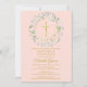 Ein dekoratives Grünland und ein goldenes Kreuz liegen über der ersten heiligen Gemeinde, die Informationen auf einem rot-rosa Hintergrund Save the Date. Auf der Rückseite befindet sich eine passende Laurel Garland und Kreuz. Entwickelt von Thisisnotme©