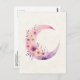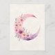 Eine Postkarte mit einer hübschen Abbildung mit einem weichen rosa und lila Halbmond. Hübsche, rosa und gelbe Wildblumen schmücken diesen Himmelskörper.