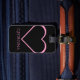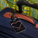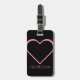 Dieses Gepäckumbau-Ausrüstungsbeschreibungen eine rosa Herzform-Kontur, zusammen mit einem personalisierten Namen, auf einem schwarzen Hintergrund.