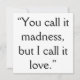 Feiern Sie diesen Valentinstag mit diesem nahtlosen, rosa Herz-Muster Valentins Tageskarte mit einem Zitat aus der Liebe hinten, das lautet: "Sie nennen es Wahnsinn, aber ich nenne es Liebe."