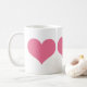 Klassisch weiß 11 oz. Tasse mit drei Bildern eines rosa Herzens. Auch in den Farben Schwarz, Orange, Rot, aquamarin und Gelb erhältlich. Siehe dazu passende Espressotasse und Untersetzer. Die gesamte Valentinstag-Tasse im LEBENSMITTEL/BEV | Abschnitt Geschirr.