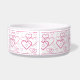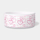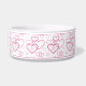 Desteis schönes Muster rosa Herzformen in verschiedenen Größen. Die Herzen werden als Linienkunst gezeichnet, die sie hohl macht und die weiße Keramik-Hintergrundfarbenshow durch lasse. Oben und unten haben rosa Farbgrenzen, und es gibt einen personalisierbaren Textbereich für einen Namen oder einen anderen benutzerdefinierten Text. Dies ist ein wunderbares Design für jeden, der sein Haustier liebt, einfach nur die Farbe Rosa mag oder eine Liebe Thema Schüssel will für Valentinstag Zeit, zum Beispiel.