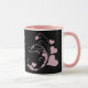 Diese hübsche Valentinstag-Tasse hat ein wunderschönes rosa Imitat Glitzer Herz wirl-Design vor einem dramatischen schwarzen Hintergrund. Das Bild wird zweimal auf der Tasse gedruckt, mit Textfeldern, die Sie in der Mitte anpassen können. Es zeigt einen Valentinstag Gruß, aber man kann es leicht auf alles ändern, was man möchte. *Bitte beachten Sie, dass das Bild gedruckt ist und keinen Glitzer enthält.