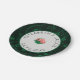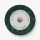Teller mit rosafarbener, rosa Kamelie-Blume, weißem Hintergrund mit grüner Grenze und Blumenhintergrund. Text ist anpassbar. Achten Sie auf passende Hochzeitsprodukte.