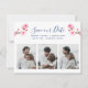 Die Kirschblüten in leuchtend rosa und in den Farbtönen von Rosa. Elegantes blaues Skript "Rett unser Datum" mit einer modernen Schriftart-Kombination und drei Bildplatzierungen für Ihre speziellen Fotos. Design ist anpassbar.