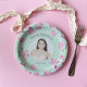 Erstellen Sie individuelle Teller mit Ihrem Foto für Quinceñera Party und andere besondere Veranstaltungen. Ihr Foto erscheint in der Mitte dieser Papiertafel in einem elegant geformten Rahmen. Es gibt einen Ort, um einen eigenen, benutzerdefinierten Text mit einem Party-Namen am oberen Ende des Fotos und einem Datum unten hinzuzufügen. Es handelt sich um Set vor einem minzgrünen Hintergrund, umgeben von hübschen Blume mit rosa Kirschblüten.