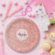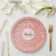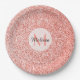 Rosa Korallen hellpastellfarbene Glitzern Monogram Pappteller