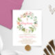 Erschwingliche, individuell bedruckte Baby Girl Taufe Einladungen. Dieses hübsche Design hat einen Blumenkranz in Aquarelltönen mit pastellrosa Blume und Grünpflanzen. Personalisieren Sie das Design mit den Details zum Party der Taufe Ihres Kindes. Die Rückseite hat eine rosa Farbe, oder Sie können den Platz verwenden, um zusätzliche Texte und Fotos hinzuzufügen. Klicken Sie auf Anpassen, um eine beliebige Hintergrundfarbe auszuwählen und die Schriftart und Farben zu bearbeiten, um eine einzigartige Baptismus-Einladung für Ihr Baby zu erstellen.