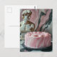 Rosa Kuchen und Marmorstatue Postkarte
