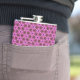 Ein nahtloses Muster füllt den Rahmen mit einem komplexen Zusammenspiel von rosa Tönen. Das sich wiederholende geometrische Motiv schafft einen fast blumigen Eindruck, der visuell hypnotisch und detailliert ist.