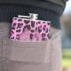 Eleganter Leoparddruck mit rosa Bogen und Diamanten. Text ist auch Sie bevorzugen personalizable.