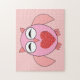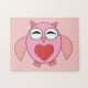 Dieses phantastische Rätsel enthält einen niedlichen Cartoon einer rosa Eule mit schläfrigen Augen, einen kleinen Schnabel und niedliche kleine Füße. Die Eule hat ein großes Herz aus roter Liebe inmitten ihres Bauches und die Flügel sind weit offen, um jemanden zu umarmen.